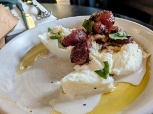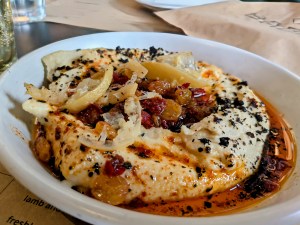 - Hummus, burnt harissa butter, blonde raisins and lemon