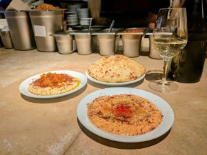 - Spicy feta, roasted peppers, pickled red chilli spread