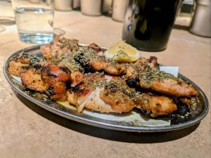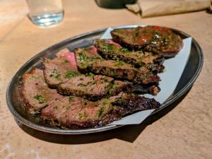 - Spicy pork sausage, spit roast pineapple, hot honey flatbread