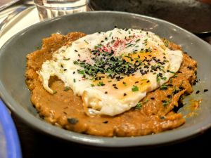 - Mirza Ghasemi – Smoked aubergine, tomatoes and garlic, topped with a fried egg