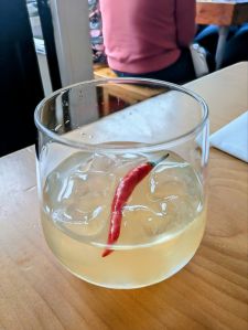- Spicy Margarita – Almave blue agave spirit (0.5%) infused with red chilli, agave, lime juice, chilli. 100ml serve.