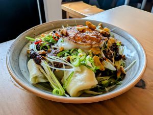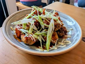 - Hot chicken – Korean-style fried boneless chicken thigh, Carolina Reaper & Gochujang glaze, nori mayo, chilli, togarashi, fresh green peppercorns, spring onions