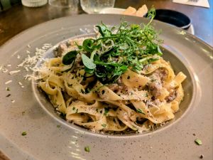 - Haggis Pasta: An Italian pasta dish with a Scottish twist! Tagliatelle, haggis, truffle pesto, wild mushrooms & cream