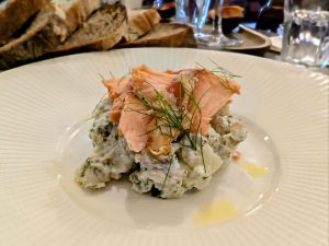 - East Neuk Kilnhouse hot smoked trout with new season potato salad