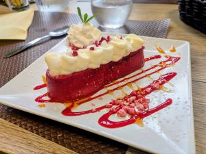 - Dessert: Cheese & Raspberry cream cake (vacherin framboise)